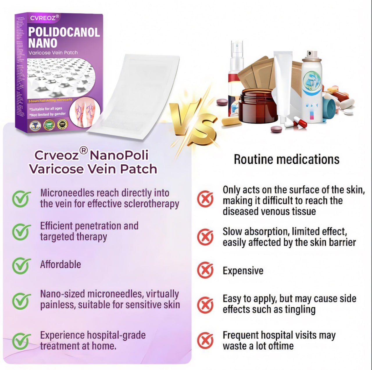 Polidocanol, the patch’s active ingredient, is a clinically proven sclerosing agent. It works by shrinking damaged vein walls, improving their structure, reducing blood stagnation, and relieving symptoms like leg soreness and heaviness. Regular use supports better vein elasticity and circulation.