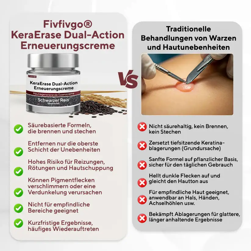„Ich hatte eine hartnäckige Warze am Finger, die immer wieder kam. Die meisten Behandlungen haben die Oberfläche nur verbrannt, aber die Wurzel nicht erreicht. KeraErase wirkte tiefer – kein Brennen, sondern eine allmähliche Erweichung. Nach regelmäßiger Anwendung schrumpfte die Warze und verschwand schließlich. Meine Hände sehen wieder normal aus.“