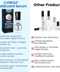 This innovative serum is specifically formulated to infuse your nails with the essential strength and nourishment they crave. Transform your nail care routine and witness the remarkable health and vitality of your nails with this extraordinary the CVREOZ® NailGuard Nail Growth and Repair Serum