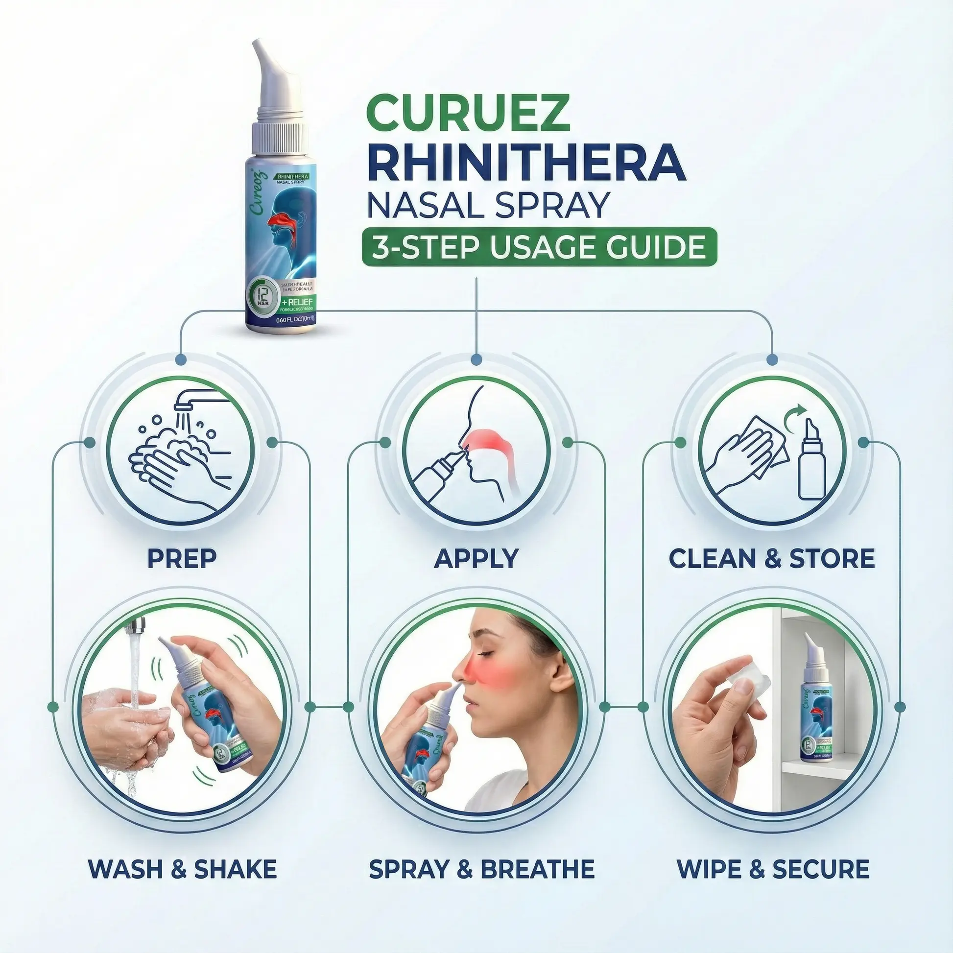 Curuez Rhinithera Nasal Spray 3-Step Usage Guide