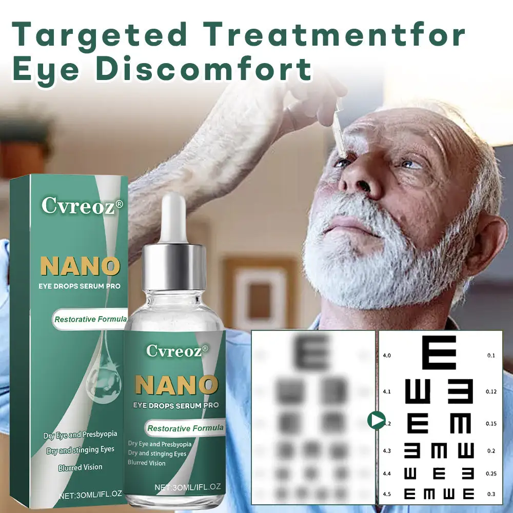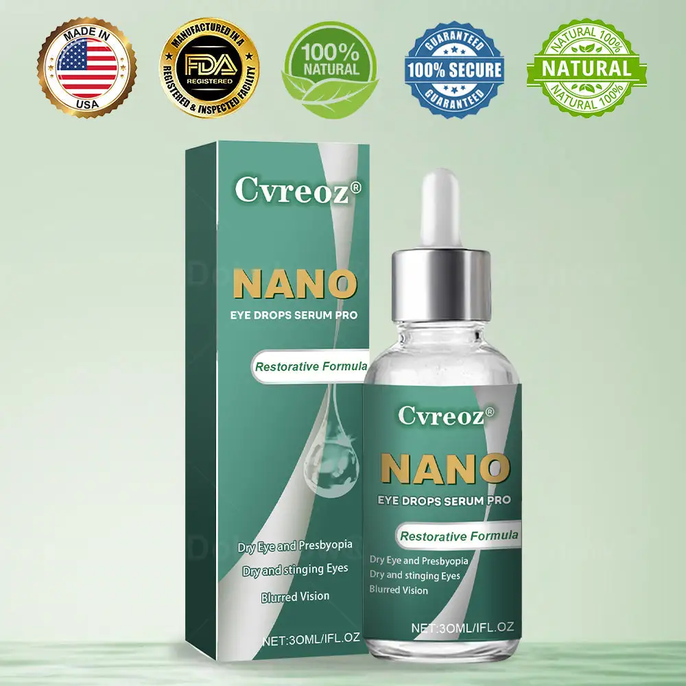 Cvreoz® Nano Eye Drops Serum Pro is the first FDA-registered ultra-fine nanoparticle formula with a clinically proven 96.8% success rate for treating multiple eye conditions at home. Thanks to breakthrough Nano-Penetration Technology, it penetrates up to 300% deeper into eye tissue compared to conventional drops, showing visible results within 48-72 hours.