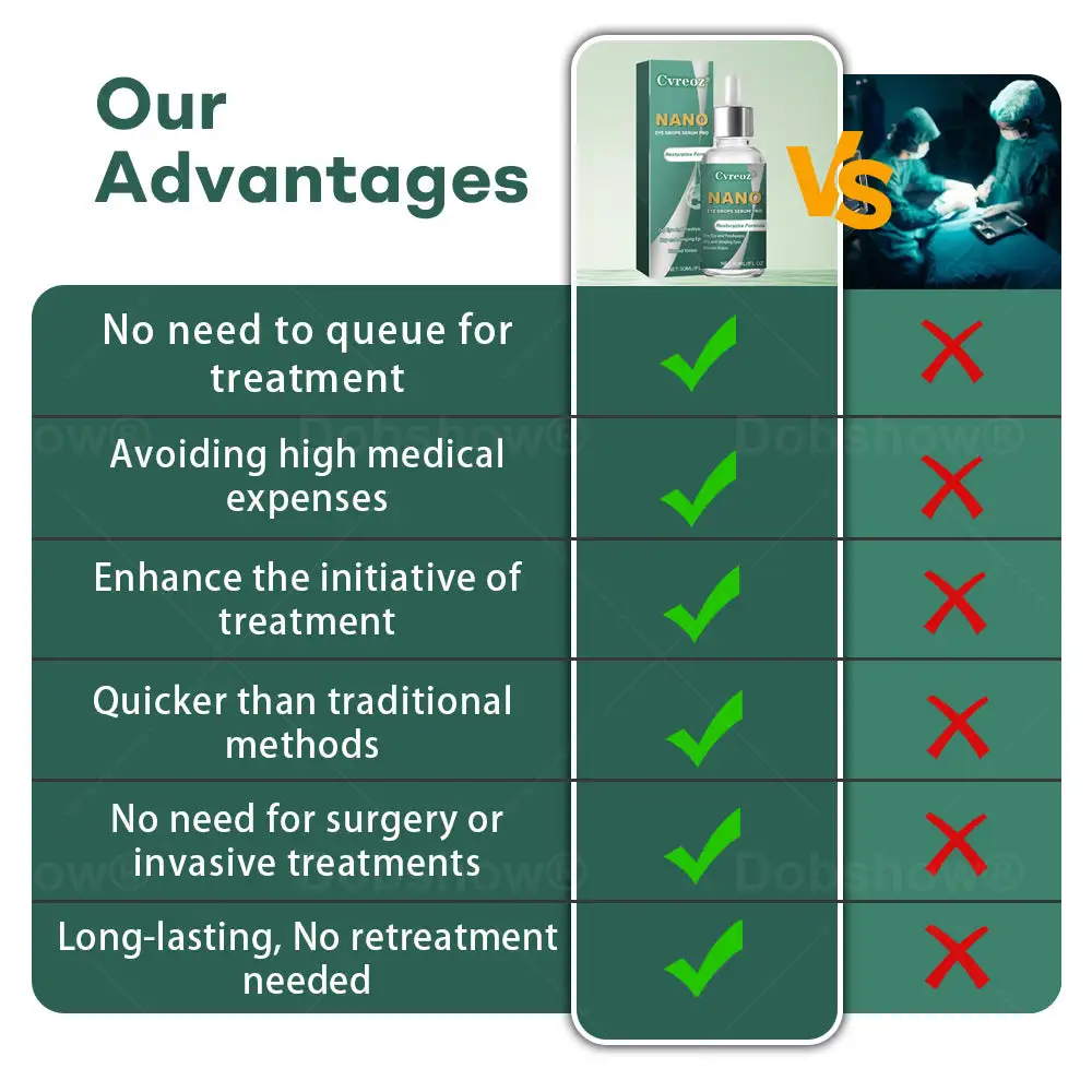 Cvreoz® Nano Eye Drops Serum Pro works differently. By utilizing ultra-fine nanoparticles, it delivers natural ingredients directly to the eye cells for enhanced absorption and prolonged retention, allowing you to see results faster and more effectively than with regular eye drops.